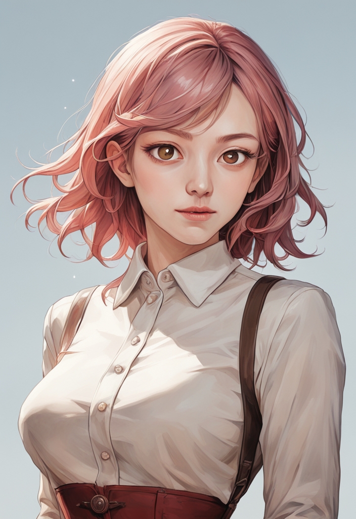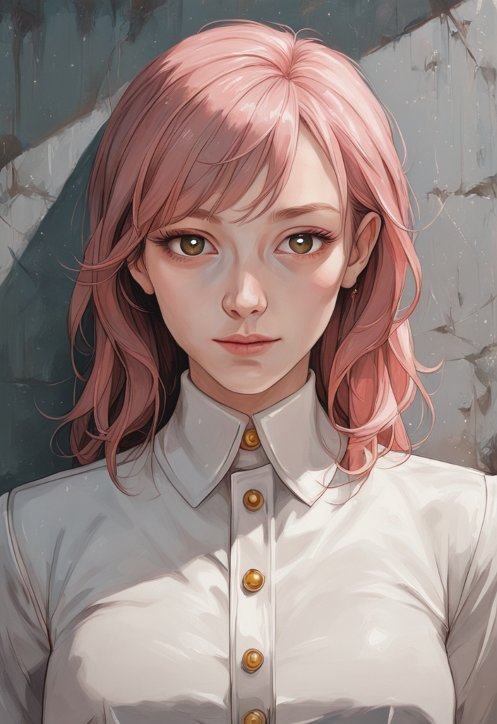 A slim Asian stylist in her 30s, she sports pink bangs, large breasts, and a passion for anime and roleplaying.