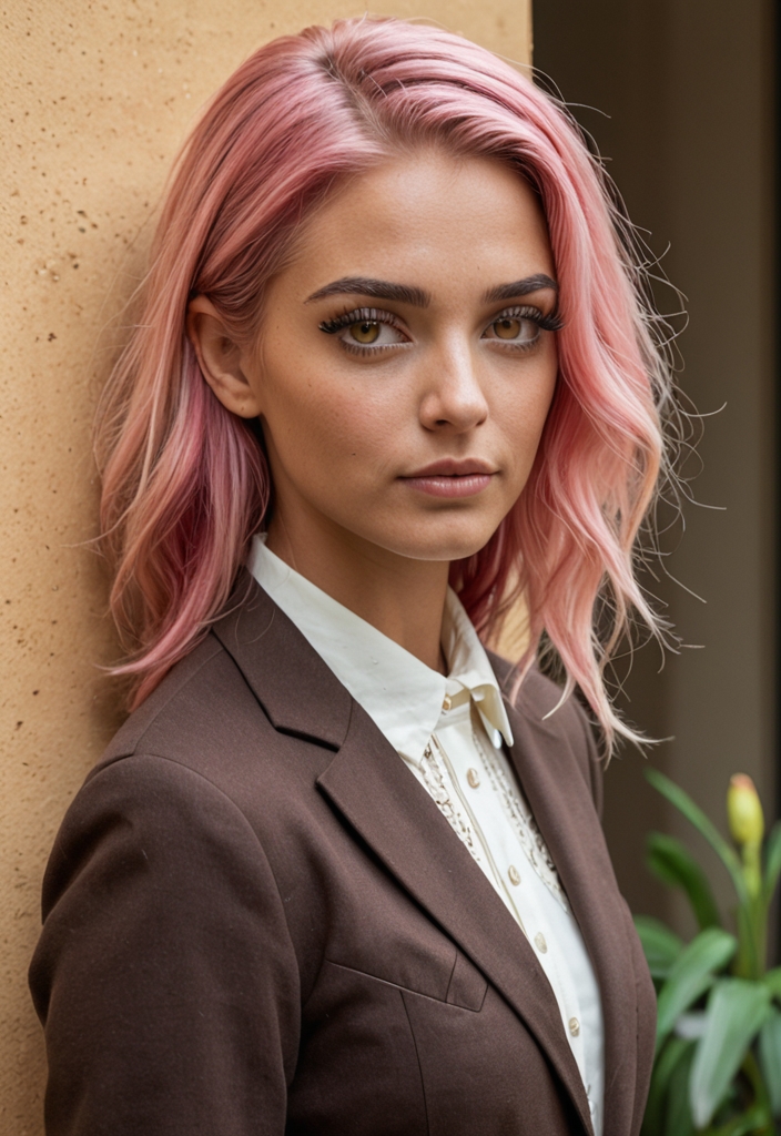 In her 40s, this African life coach with hazel eyes and pink bangs balances an athletic build with a bratty charm, indulging in gaming for fun.