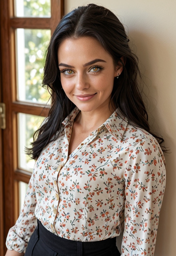 A slim Latina teenager with brown eyes and a red ponytail, she’s a sapiosexual artist who loves cosplay, embracing her vibrant, artistic spirit.