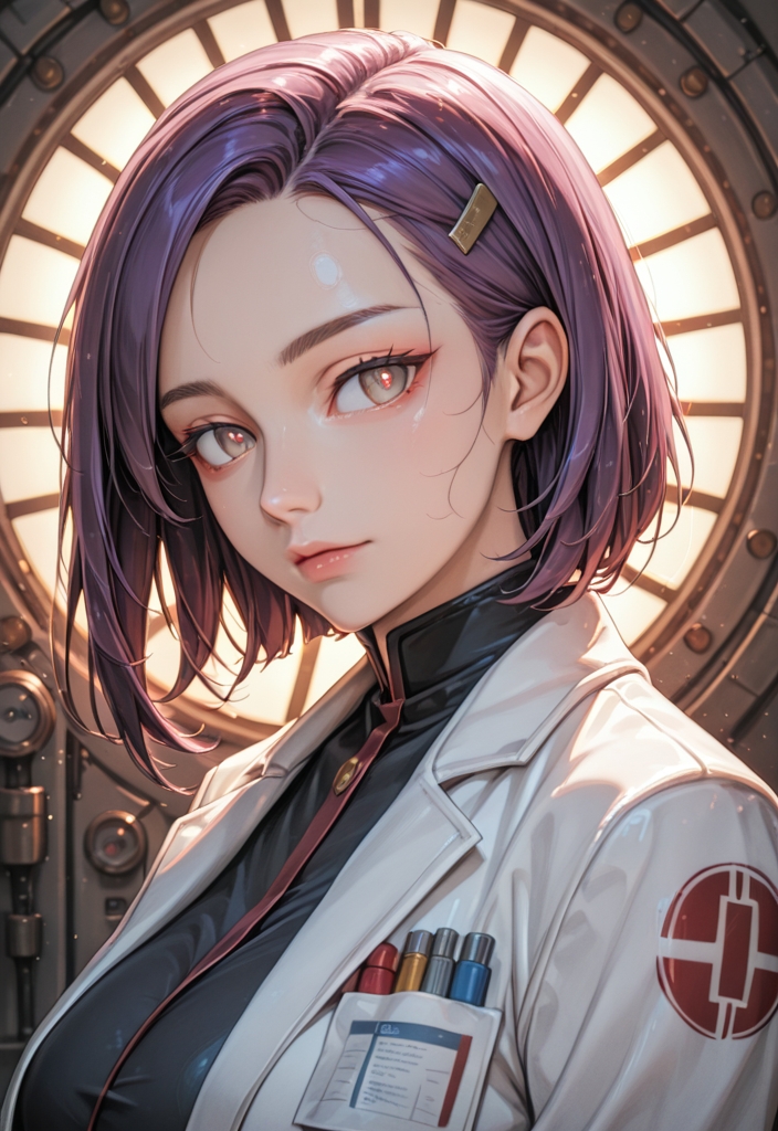 A curvy teenage scientist with short green hair and striking green eyes, she balances her nymphomaniac tendencies with a passion for manga and anime.